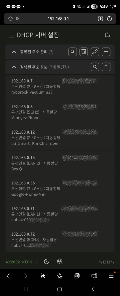 받았더니 펌웨어 업데이트가 있어서 바로 실행했는데, 뭔가 진행도가 보인다거나 하지는 않고, 오프라인이 되면 얼마뒤에 업데이트 완료되고 온라인 될것이다… 같은 뉘앙스의 안내 맨트만 표시되었습니다. 그 사이에 재부팅을 했던거 같은데 얼마 걸리지는 않았구요. 이상하게 설정 내에 와이파이 옵션이 있고, 분명히 저는 LAN을 연결해뒀는데, WIFI를 잡은것 처럼 보여서 공유기 셋팅을 들어가봤더니 LAN, WIFI 둘다 연결되어 있긴 하네요. 무선 채널 잡는걸 싫어하니 유선 연결해뒀으면 무선 연결 안됬으면 하는 바람은 있는데, 뭐 필요하니까 하겠죠 뭐…