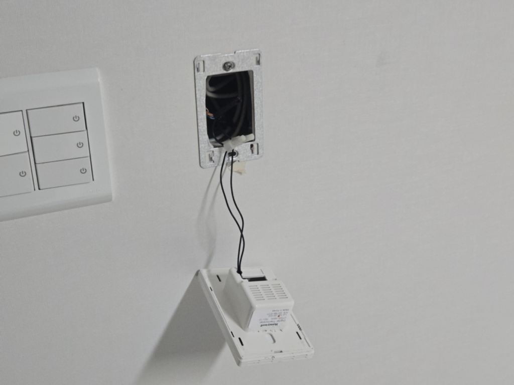 사실 이 집에 인테리어 직후 사진이 인터넷에 떠돌아 다닙니다. 그때 온도조절기는 제가 기억하기로는 구형 220V AC 제어 디지털 온도 조절기였을겁니다. 즉, 제어기 + 모터 조합이 아니라 아마 왁스형 구동기가 달려 있었을겁니다.(알고있기로는…) 근데 전 주인분께서 이걸 한번 싸악 바꾸신것 같습니다.