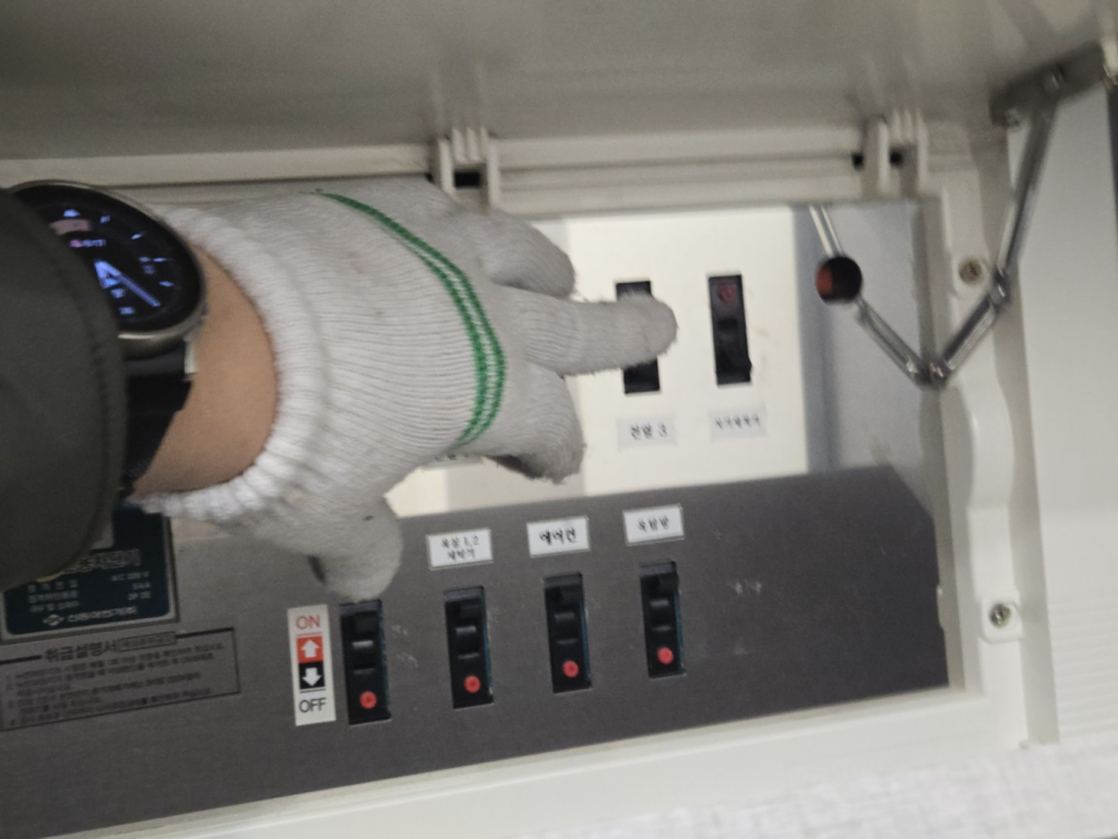 차단기를 차단해봅니다. 전열 라인 구분해서 정리해놔야 하는데, 귀찮아서 일단은 뭘 건드려고 열어볼때마다 전열1번부터 3번까지 다 꺼보는데, 이번에는 3번에 있네요.