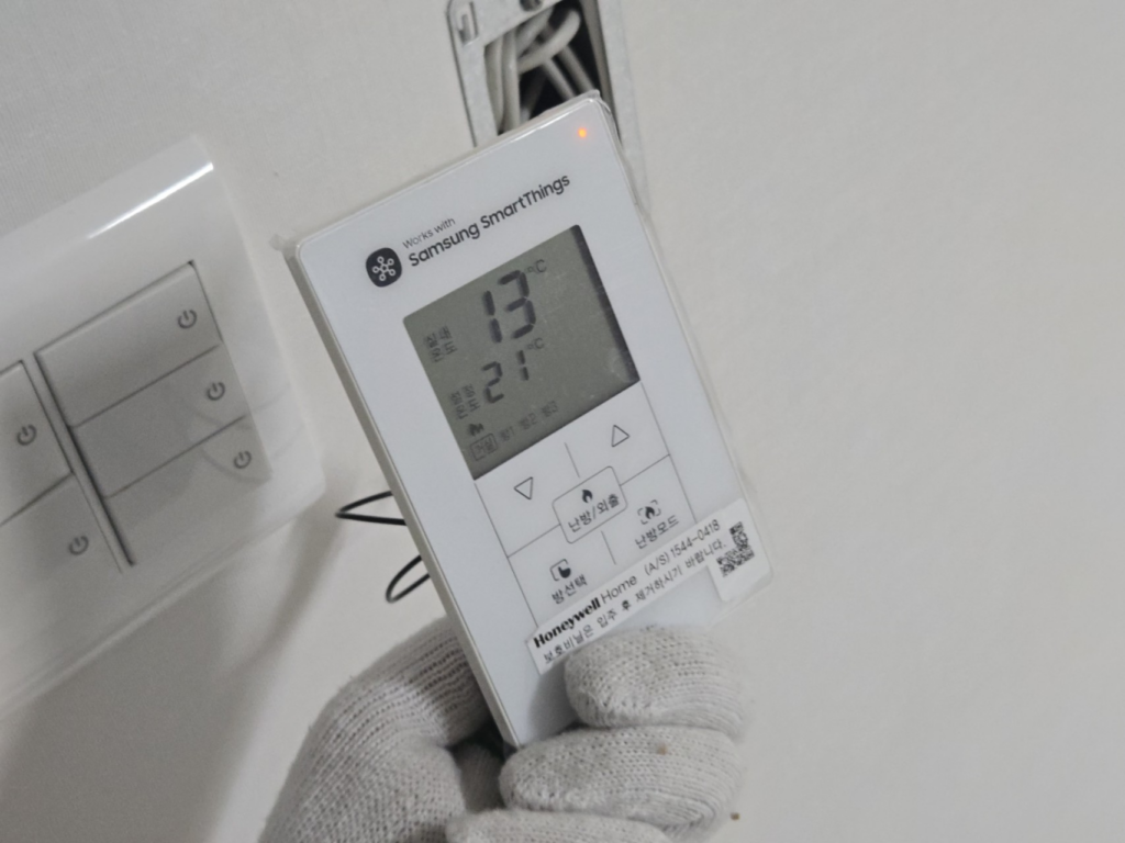 제어기가 정상적으로 동작하고 리모컨도 정상적으로 동작하는 모습 확인했습니다. 리모컨 자체에 정전보상기능이 있는지,, 기존에 설치된 다른 리모컨들은 다 난방꺼짐 해 놓은 채로 가만히 있는데, 교채한 이 거실만 전원 공급되지마자 켜진채로 있네요.