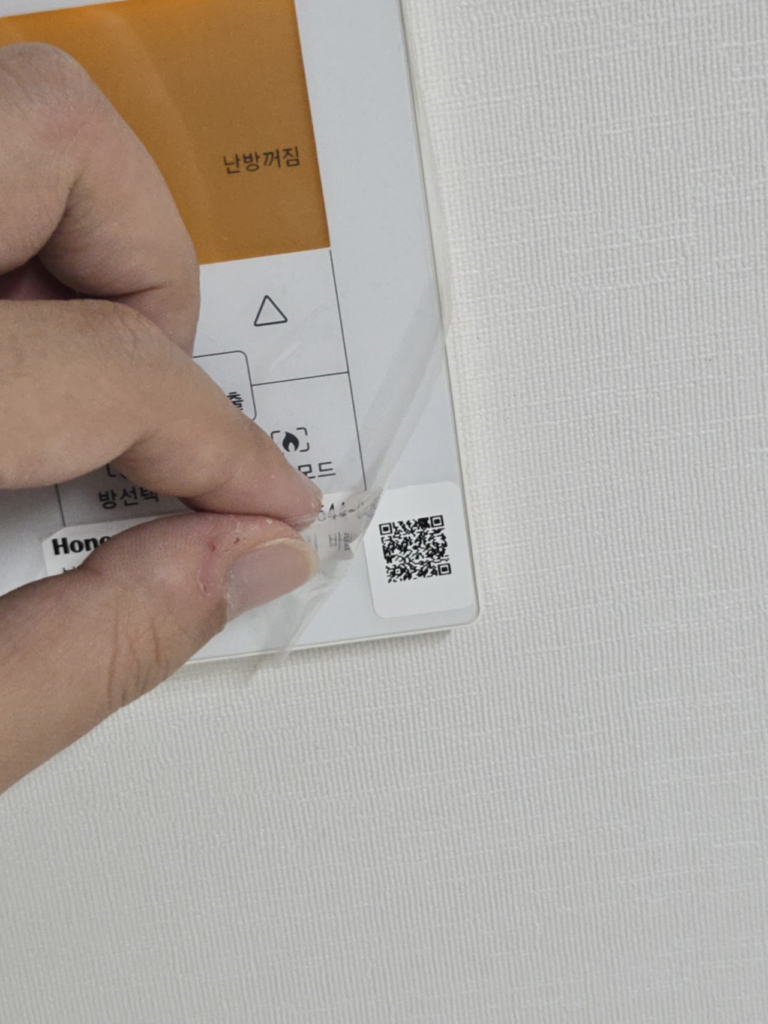 어차피 시스템 에어컨 설치도 해야 하니, 비닐은 굳이 때지 않고, QR코드만 가볍게 사진 찍습니다. 이 QR코드로 스마트싱스에 기기 등록이 시작됩니다.