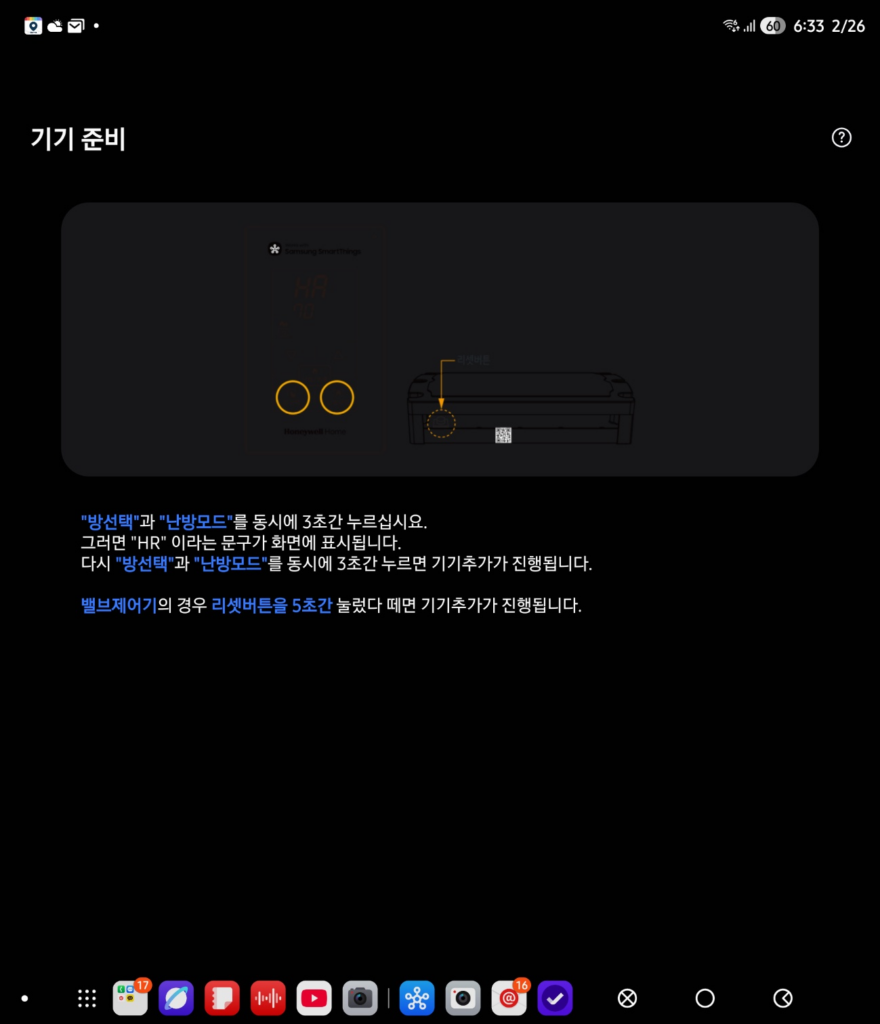 이제부터 스마트싱스허브가 온도조절기를 원격으로 조정해서 셋팅됩니다.